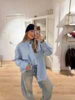 – Leuke oversized blouse met stropdas (zelf strikken, aan de achterkant in de nek vast maken met het knoopje)