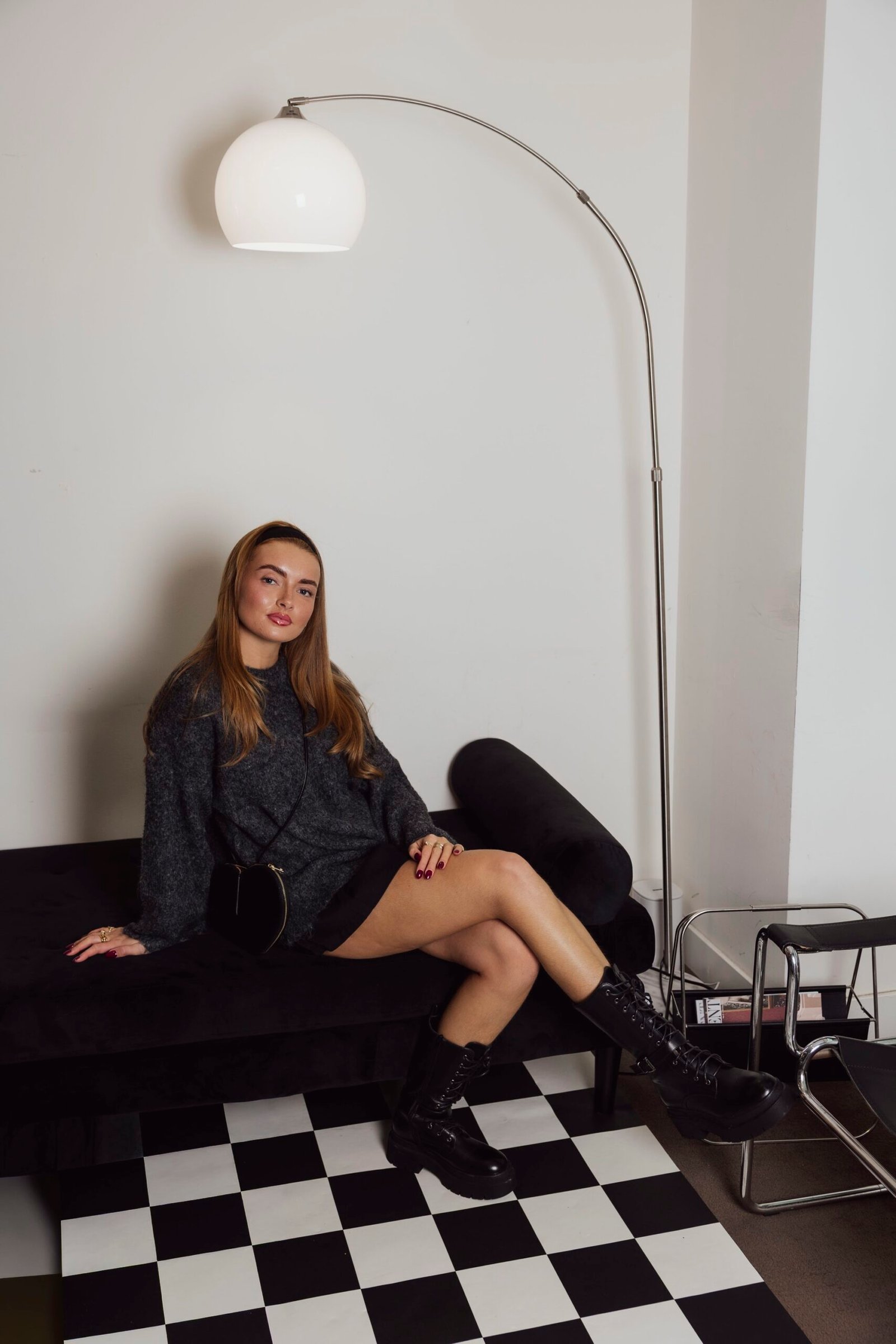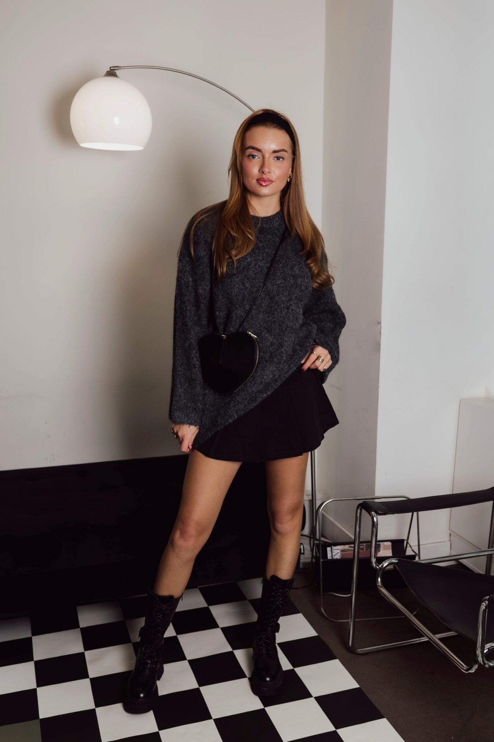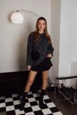 Een lekkere warme trui! Oversized in het donker grijs, leuk gestyled op onze Lola rok – zwart. Ook leuk om natuurlijk op een jeans te dragen of pantalon!