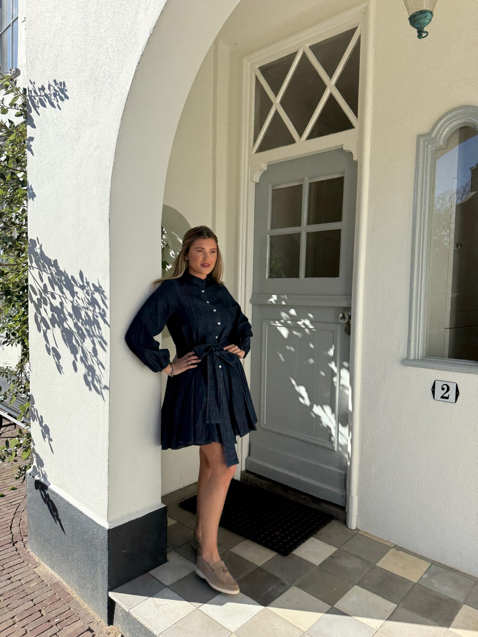 Op chloe haar lijf geschreven, een jurkje die makkelijk is maar meteen goed zit en voor elke gelegenheid te dragen is. Het denim bow jurkje!