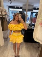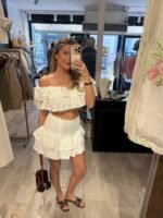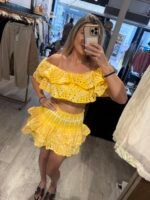 – Chloe is 1.65 en draagt van de witte & gele maat M/L en van het blauwe setje S/M (zo kunnen jullie het vergelijken)