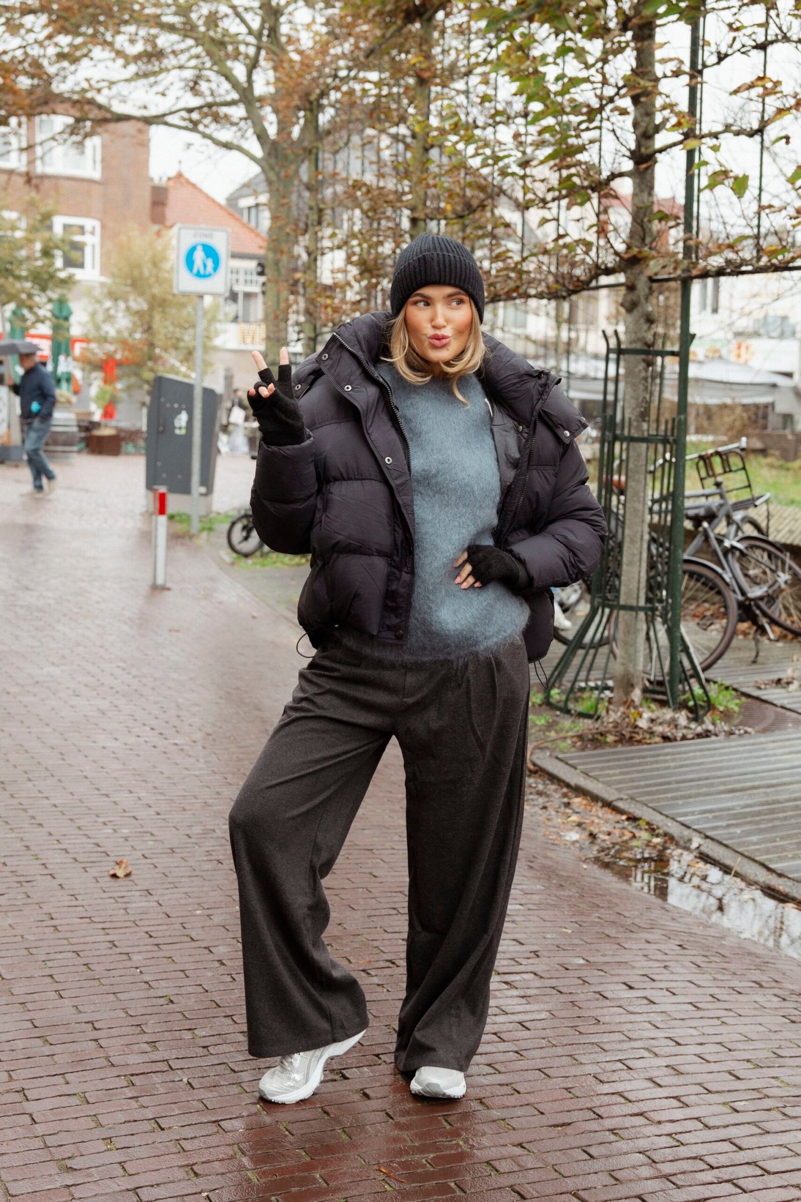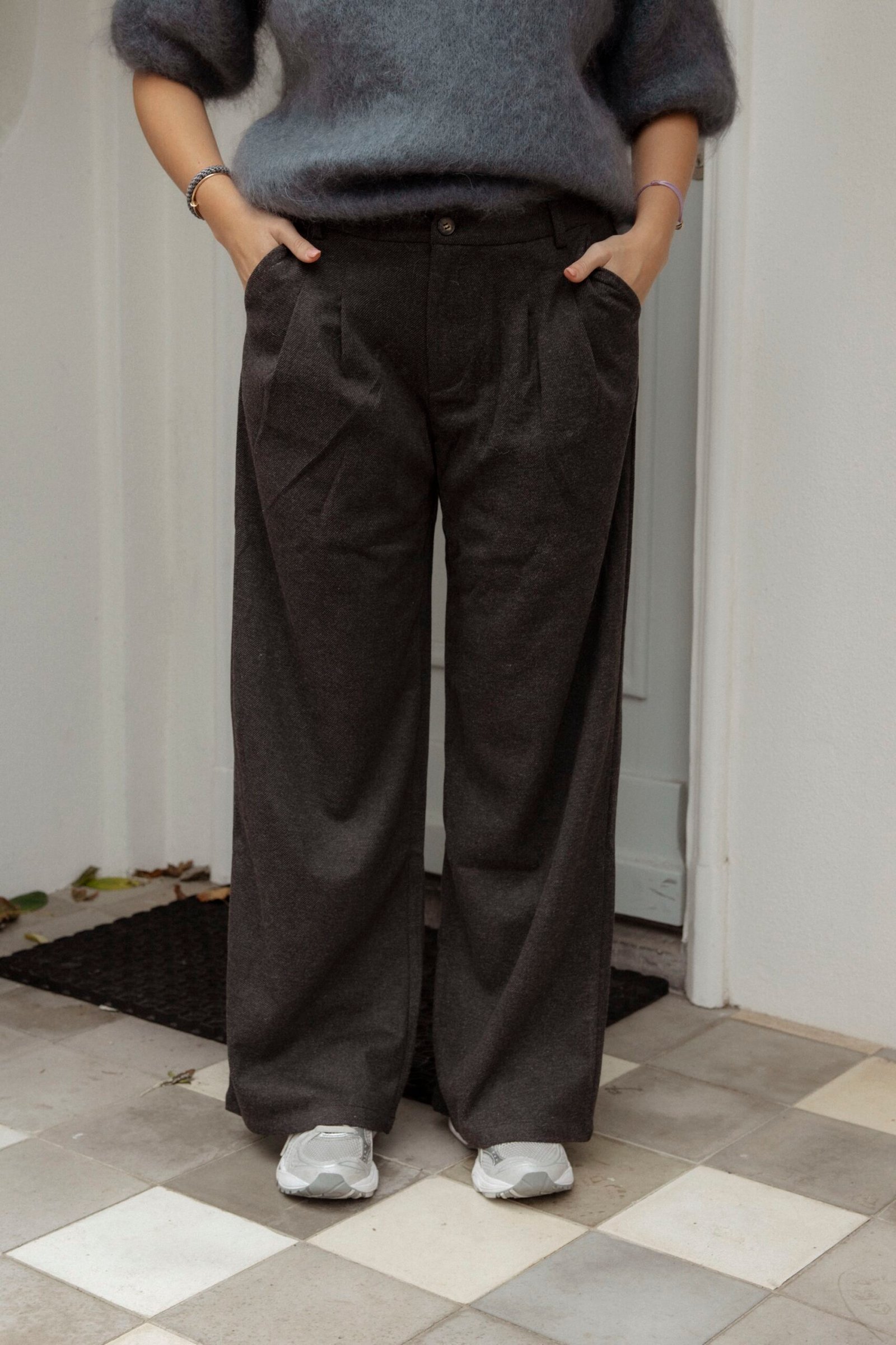 Een mooie pantalon in de kleur donker grijs! Nooit te combineren met zwart en grijs en kan niet ontbreken in je herfst/winter kast.