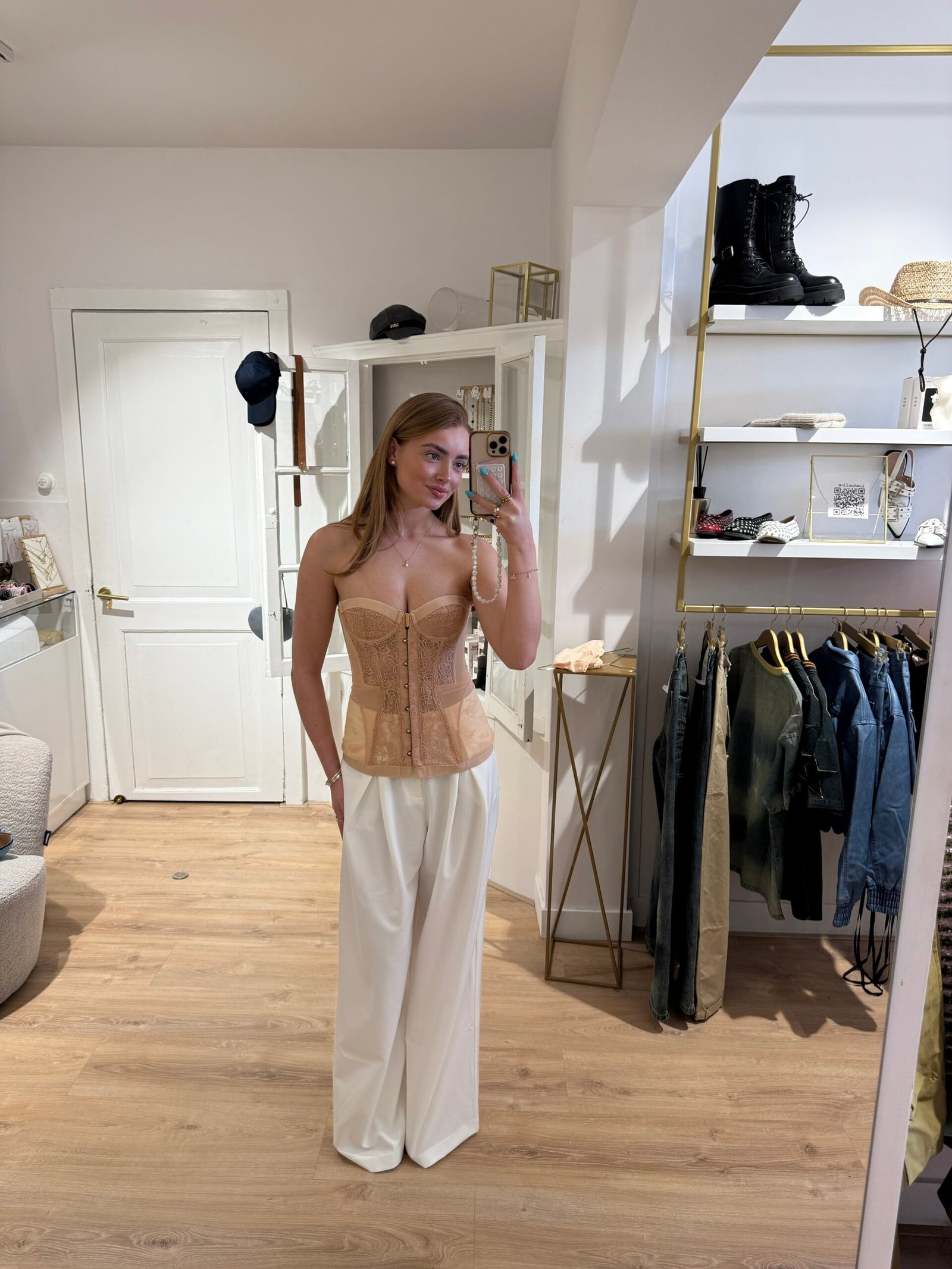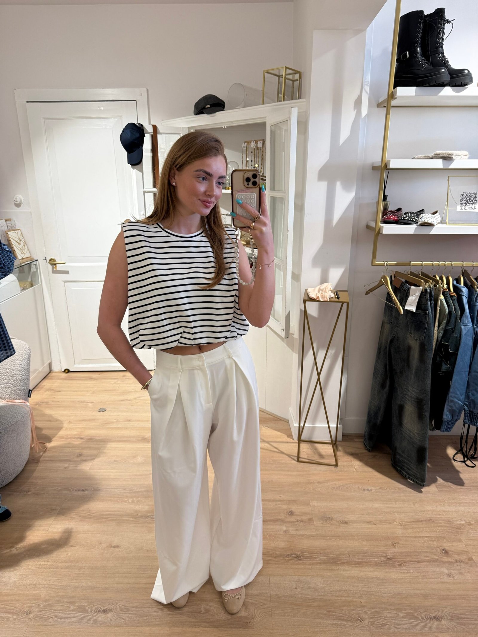 Deze witte plooi broek valt zo mooi! Hij valt ook mooi lang en het pas model van deze broek is prachtig.