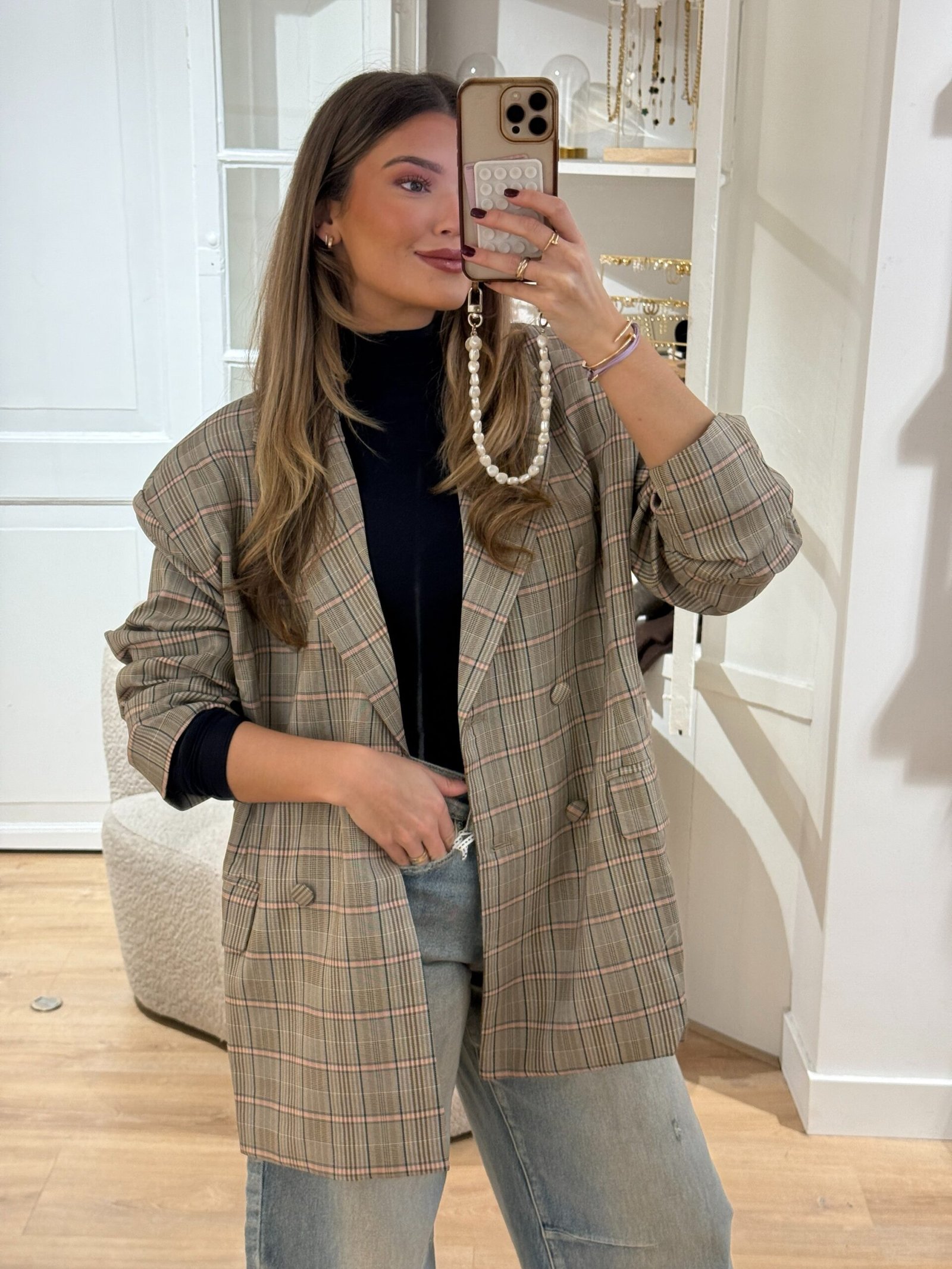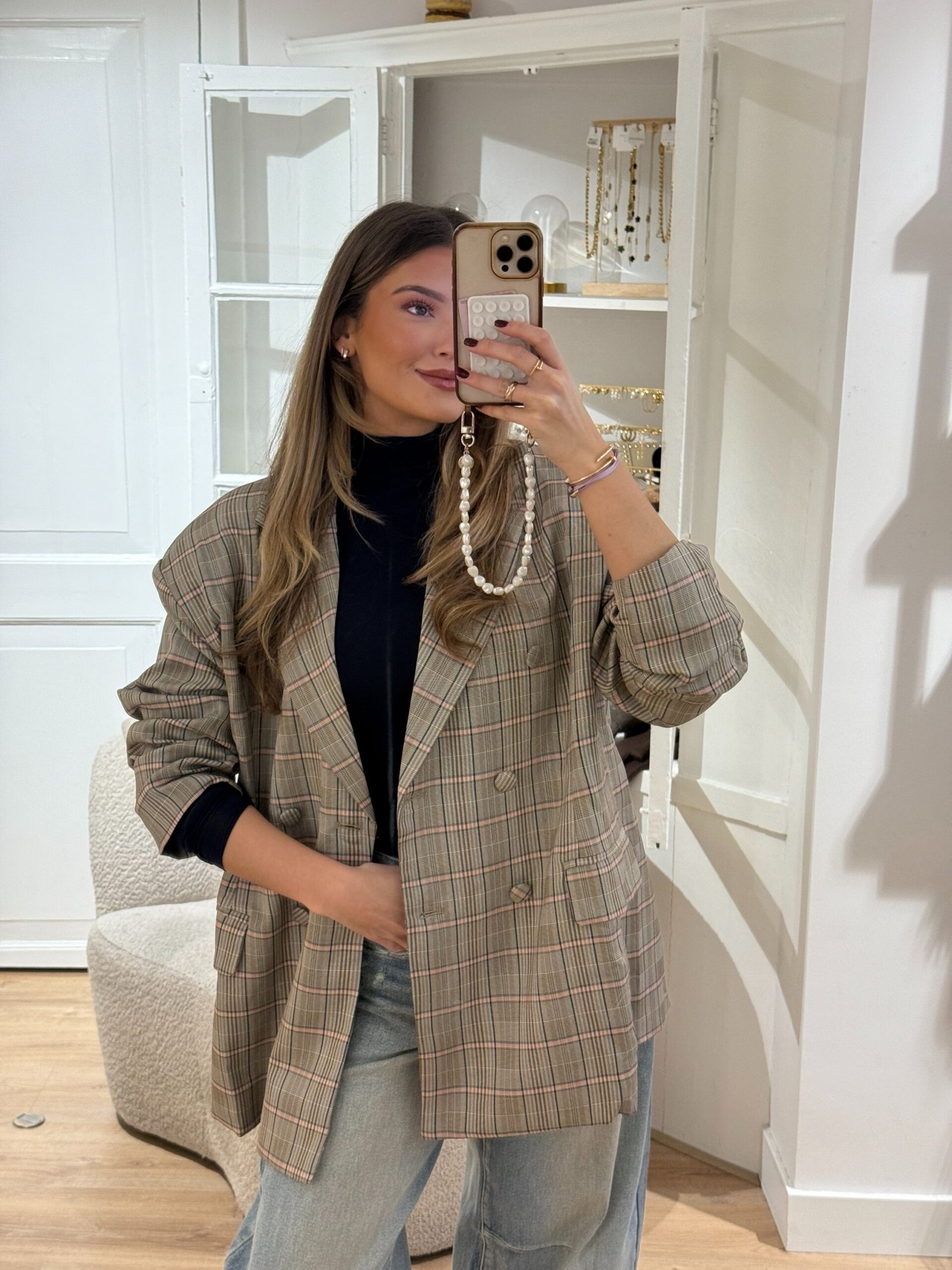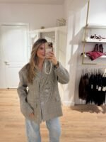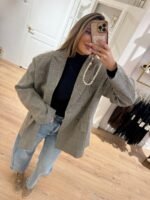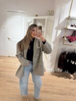 Een oversized blazer, die je op leuke manieren verschillend kan stylen! Het is een blokkig model als je hem dicht hebt en als je hem open doet zit er ook een mooi model in! Ook is die super leuk om als jurkje te dragen (zie foto’s.)