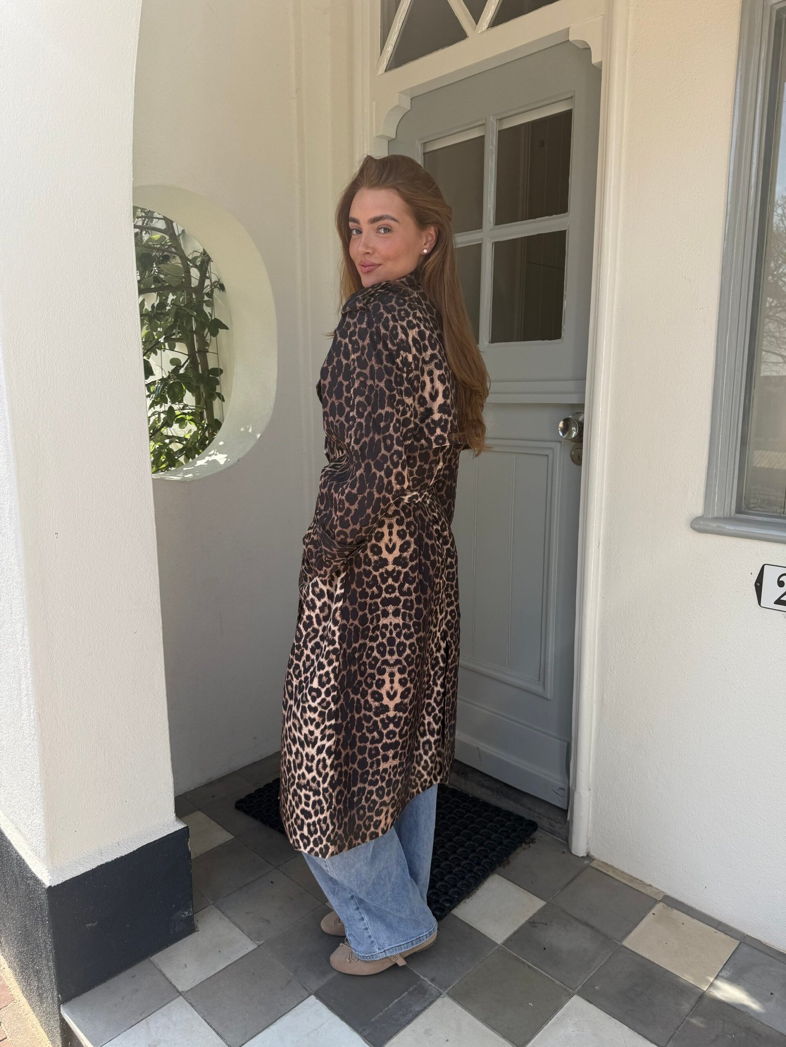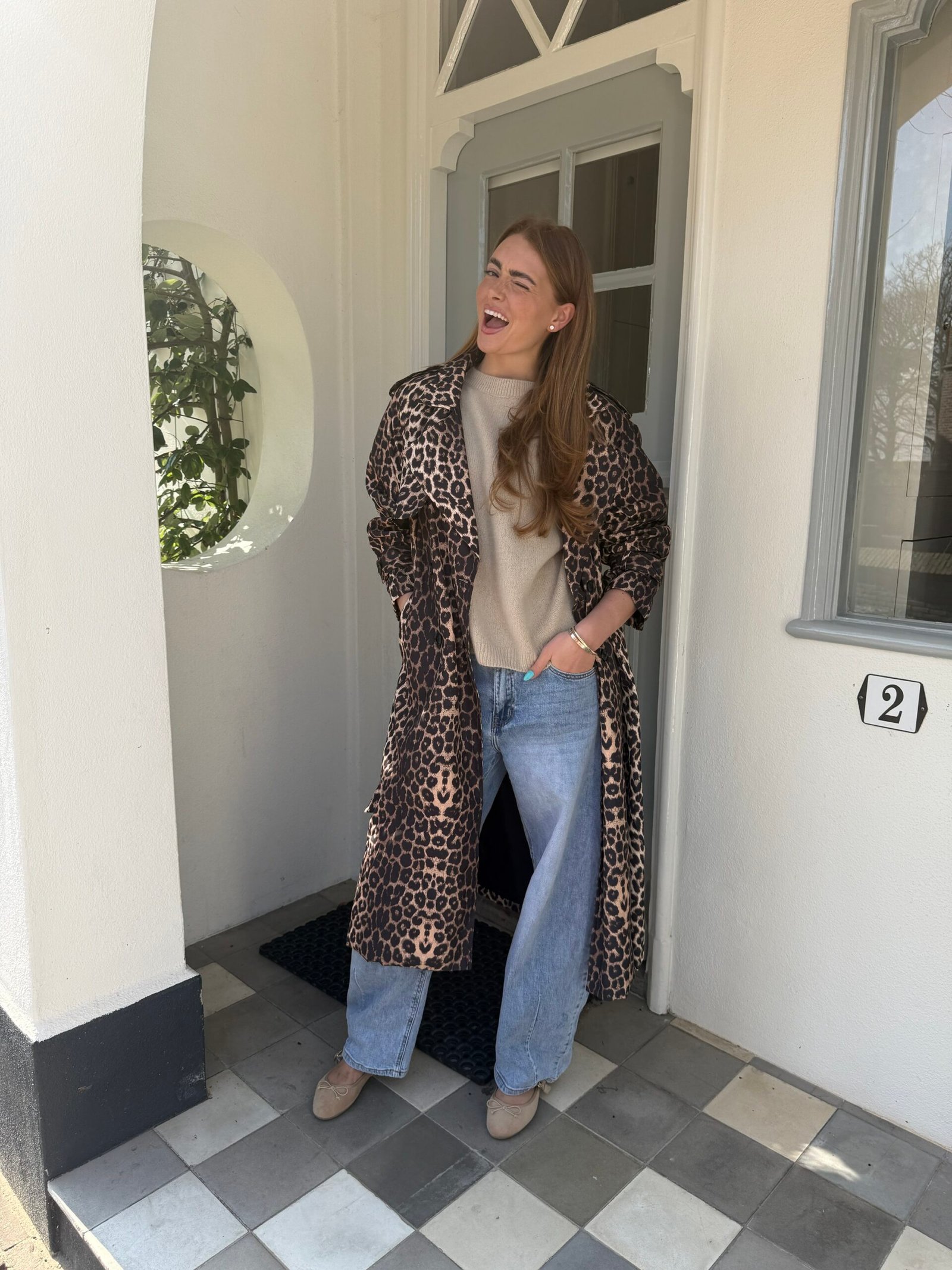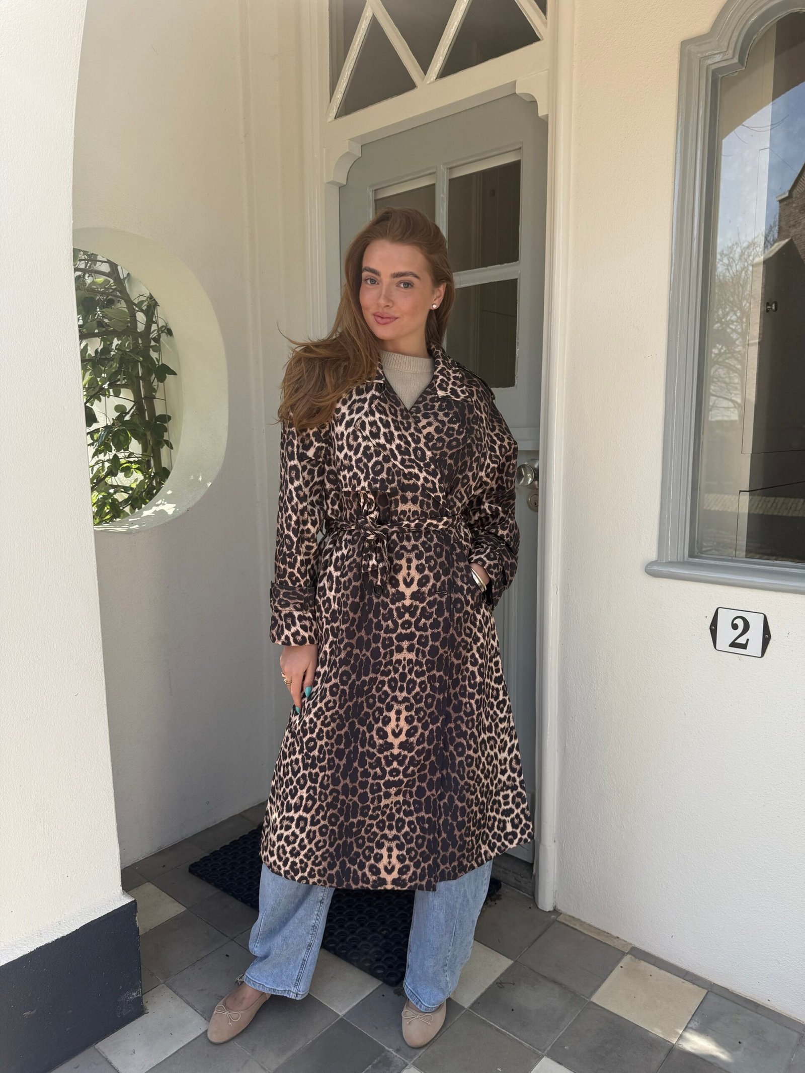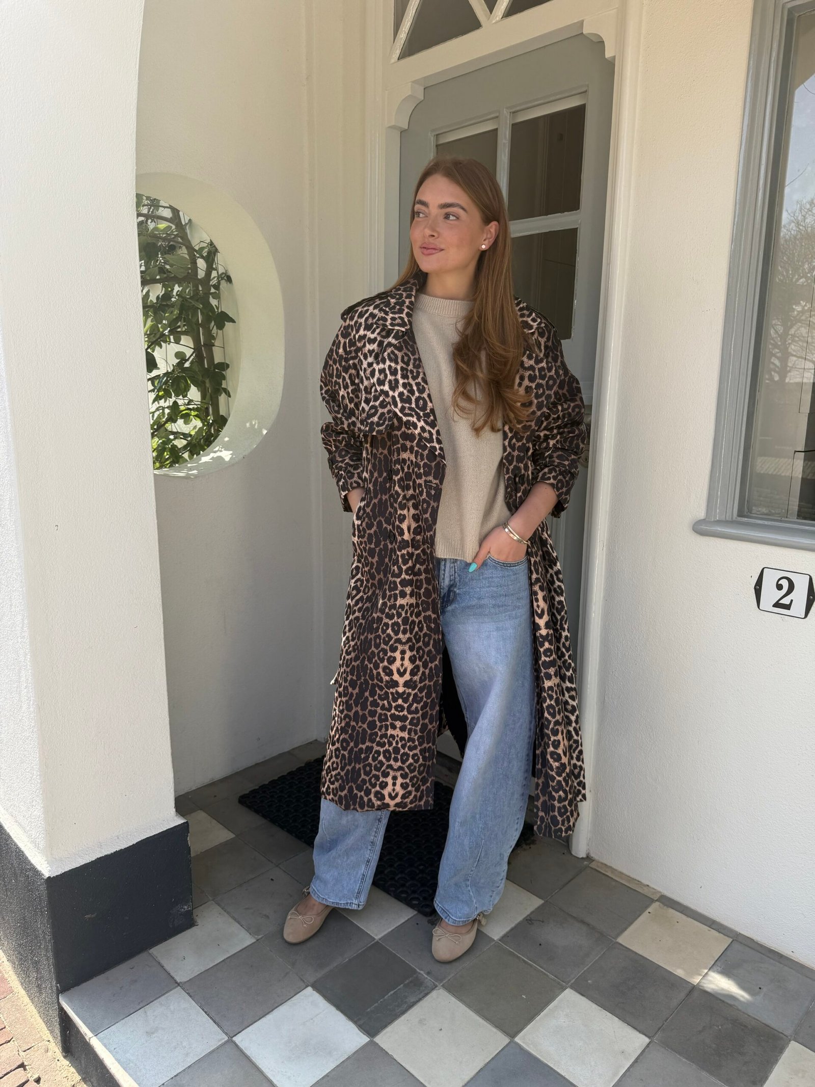 Onze knaller van een trenchcoat, sorry maar dit maakt elke outfit helemaal vrolijk!! Wij houden ervan. En het heeft ook een mooie panter matriaal.