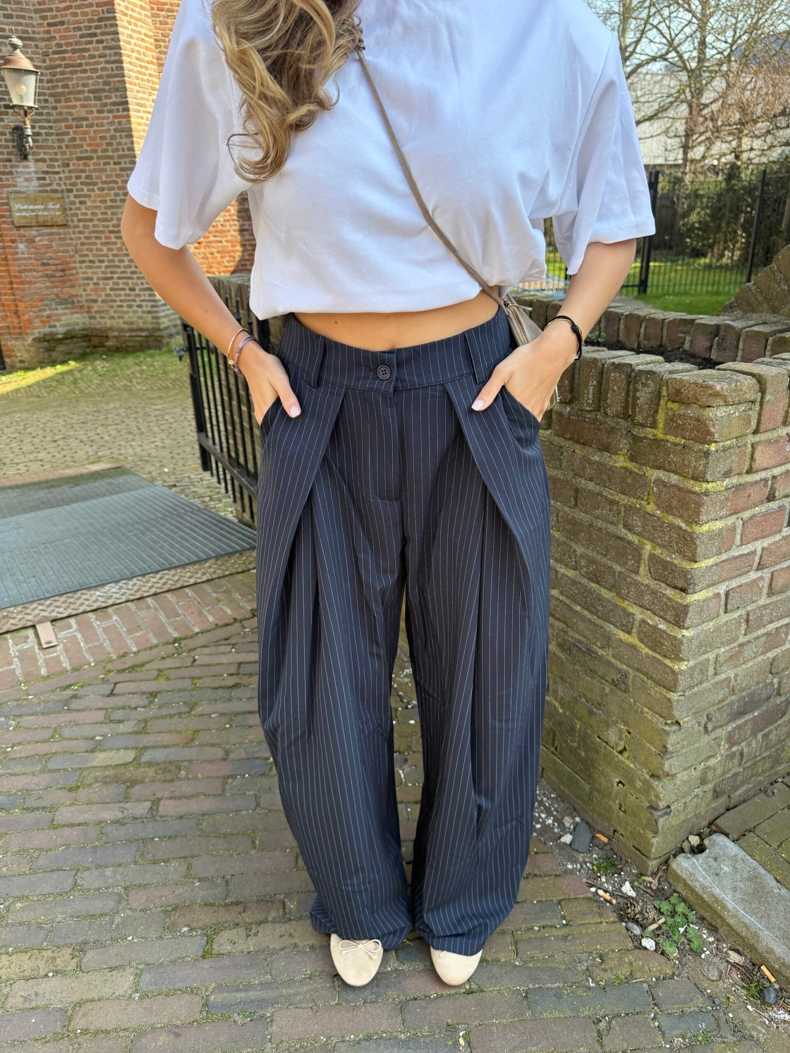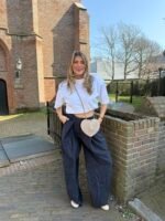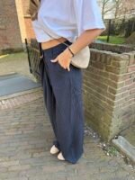 De overflap broeken, ze zijn helemaal een trend en hoe leuk is deze met het krijtstreepje erdoor heen? Ze zitten lekker en vallen ook nog eens lang.
