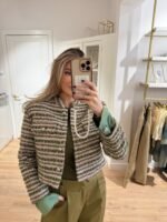 Het blazertje die iedereen wilt toch? Hij is het juiste model, niet te lang en niet te kort. En is hier gecombineerd op onze groene omslag pantalon.