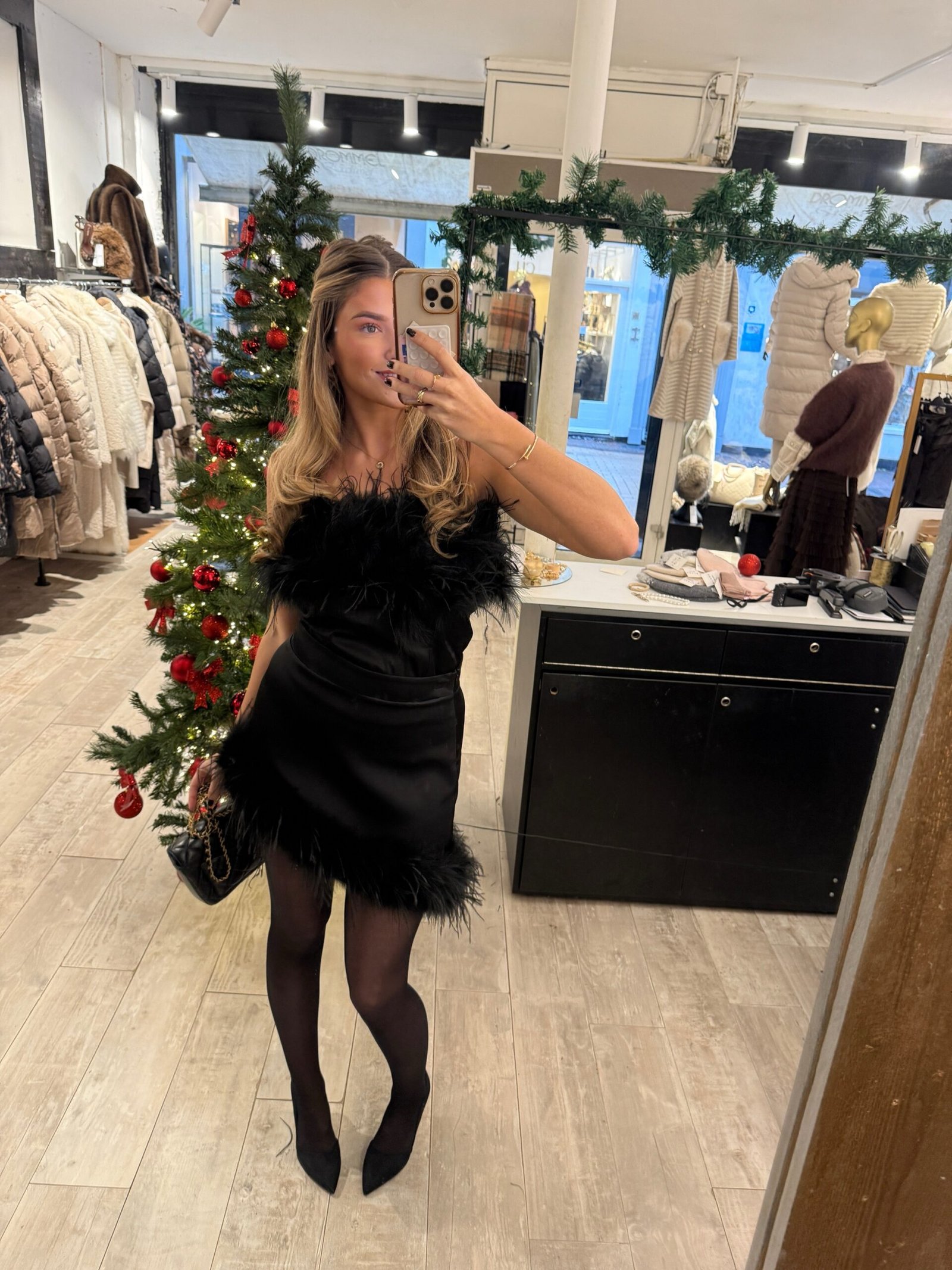 We houden van de veren trend! Het is namelijk niet alleen met kerst te dragen, maar gewoon het gehele jaar door. En hoe leuk zijn de lookjes? Of met onze body, met onze veren blouse of veren top!